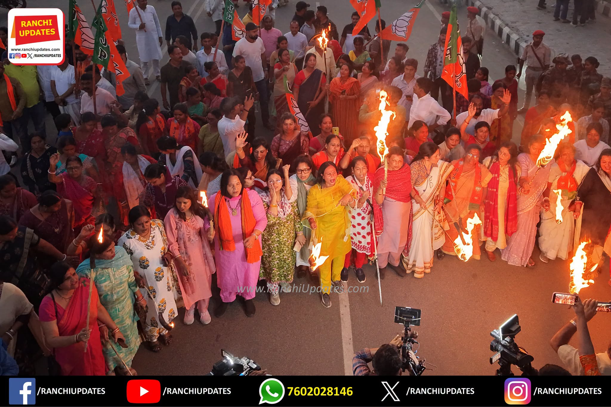 राँची में नारी सुरक्षा को लेकर भाजपा महिला मोर्चा का मशाल जुलूस