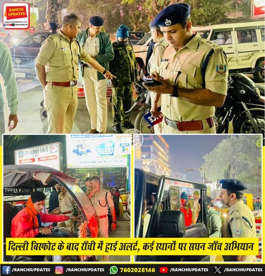 CityNews Local Alerts दिल्ली ब्लास्ट के बाद राँची में हाई अलर्ट | Ranchi... दिल्ली में हुए बम विस्फोट के बाद झारखंड की राजधानी राँची में सुरक्षा व्यवस्था कड़ी कर दी गई है। संभावित... BY Ranchi Updates November 12, 2025 0 Comments