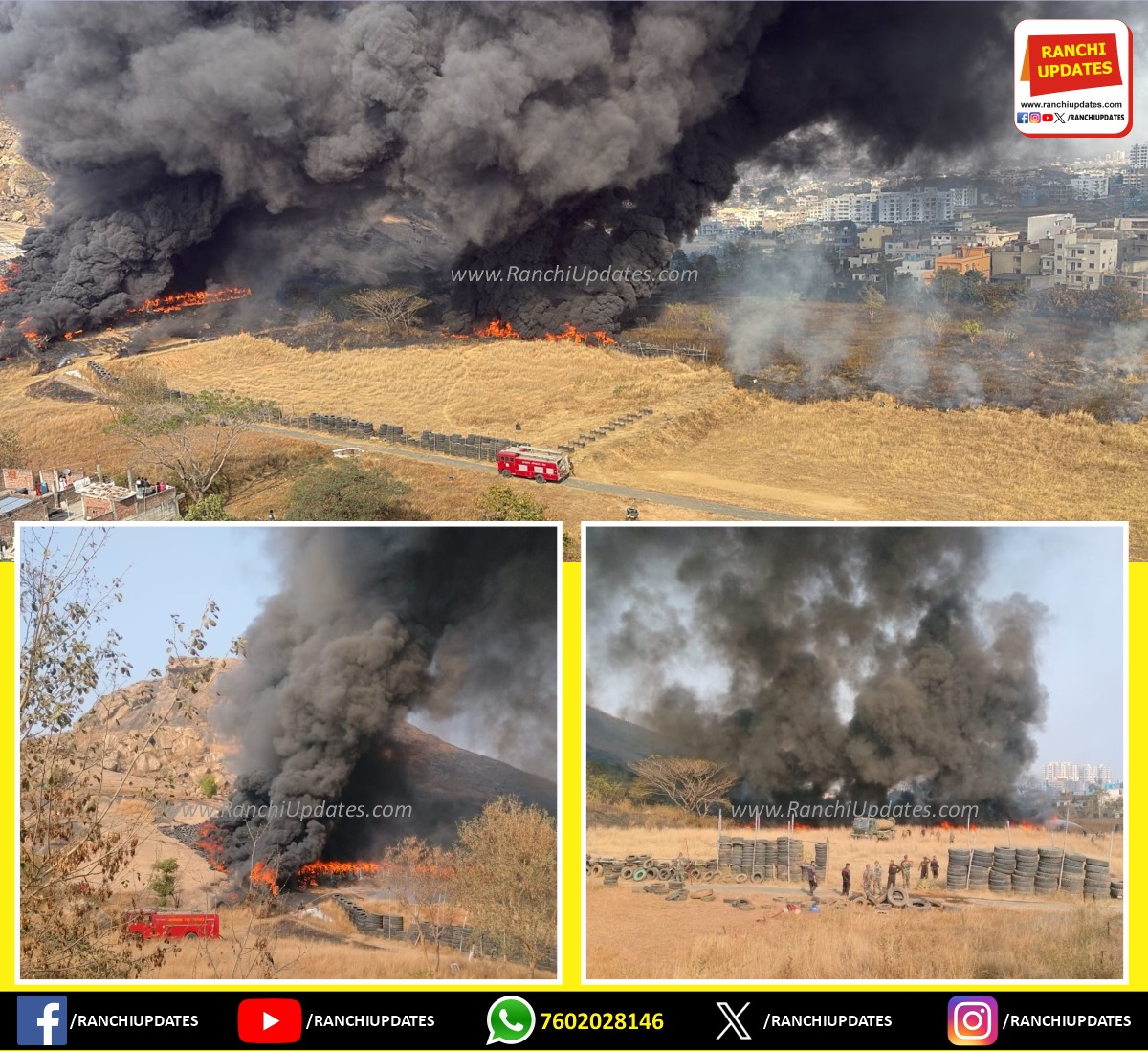CityNews बरियातू पहाड़ फायरिंग रेंज में भीषण आग, टायरों के ढेर... राँची के बरियातू पहाड़ स्थित फायरिंग रेंज में शनिवार दोपहर अचानक भीषण आग लग गई, जिससे पूरे इलाके में अफरा-तफरी... BY Ranchi Updates January 24, 2026 0 Comments