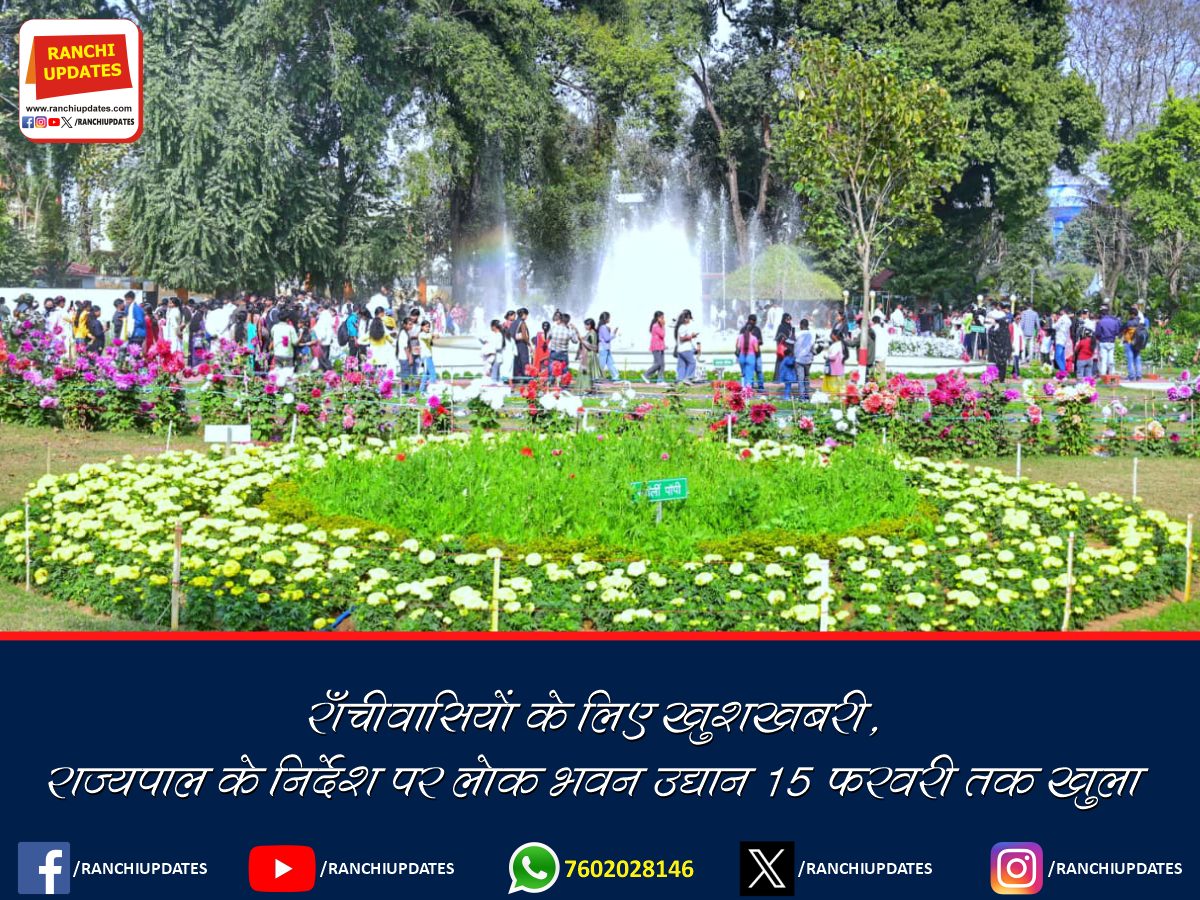 CityNews लोक भवन उद्यान आम जनता के लिए 15 फरवरी तक... माननीय राज्यपाल महोदय ने आम जनता की बढ़ती रुचि को देखते हुए लोक भवन, लोक भवन उद्यान को आम नागरिकों... BY Ranchi Updates February 8, 2026 0 Comment