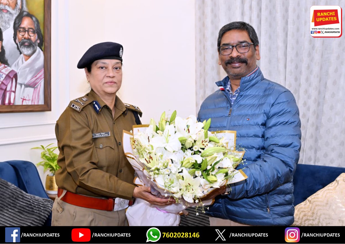 CityNews मुख्यमंत्री आवास में डीजीपी तदाशा मिश्रा की शिष्टाचार भेंट |... कांके रोड स्थित मुख्यमंत्री आवासीय कार्यालय में आज मुख्यमंत्री हेमंत सोरेन से पुलिस महानिदेशक तदाशा मिश्रा ने शिष्टाचार भेंट की।... BY Ranchi Updates December 31, 2025 0 Comment