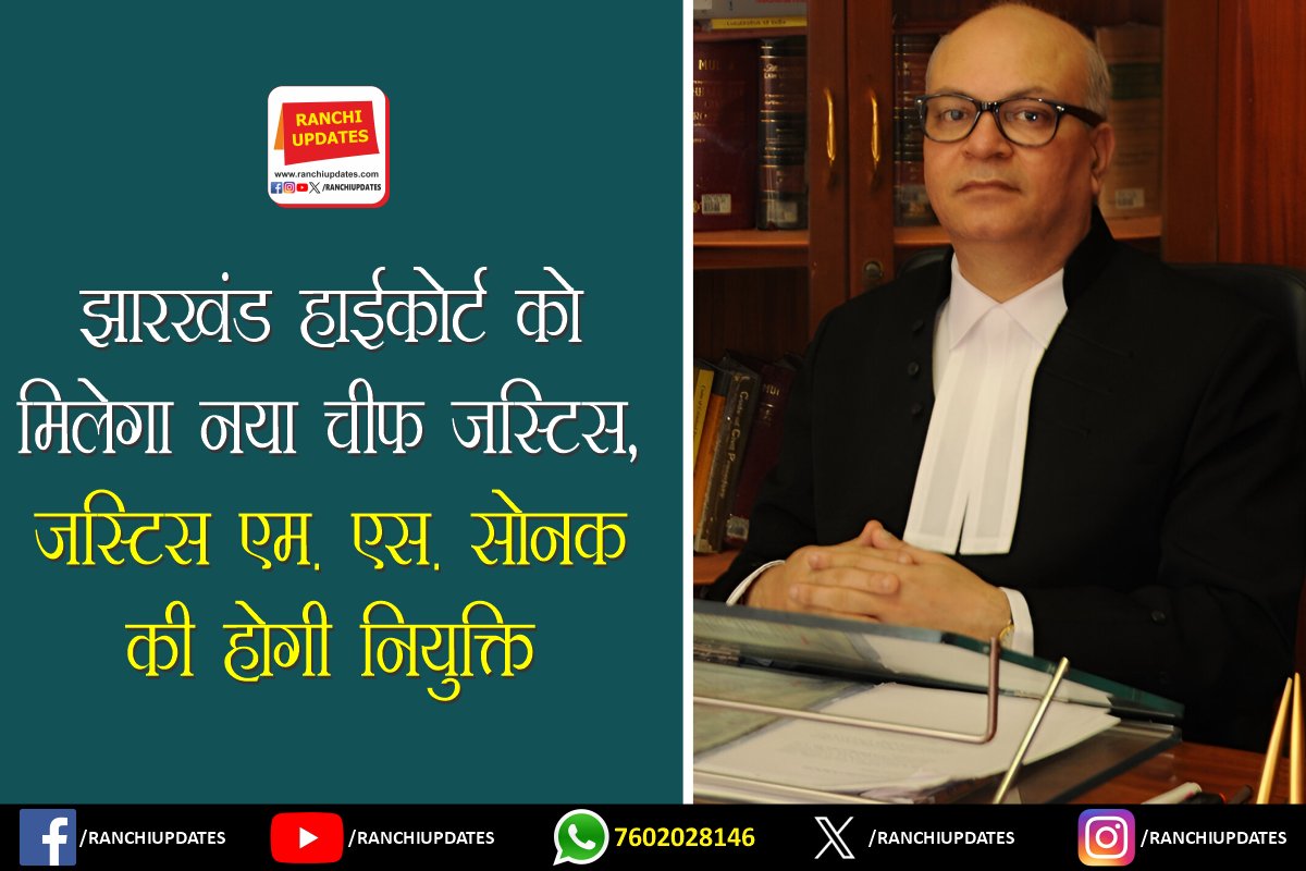 CityNews झारखंड हाईकोर्ट को मिलेगा नया चीफ जस्टिस, जस्टिस एम. एस.... झारखंड हाईकोर्ट में जल्द ही नेतृत्व परिवर्तन होने जा रहा है। मौजूदा चीफ जस्टिस तरलोक सिंह चौहान के सेवानिवृत्त होने... BY Ranchi Updates December 18, 2025 0 Comment