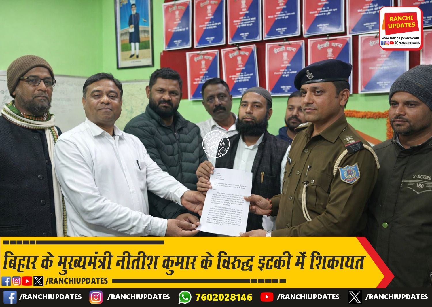 CityNews बिहार के मुख्यमंत्री नीतीश कुमार के खिलाफ राँची के इटकी... बिहार के मुख्यमंत्री नीतीश कुमार के खिलाफ राँची के इटकी थाना में एक लिखित शिकायत दर्ज कराई गई है। यह... BY Ranchi Updates December 18, 2025 0 Comment