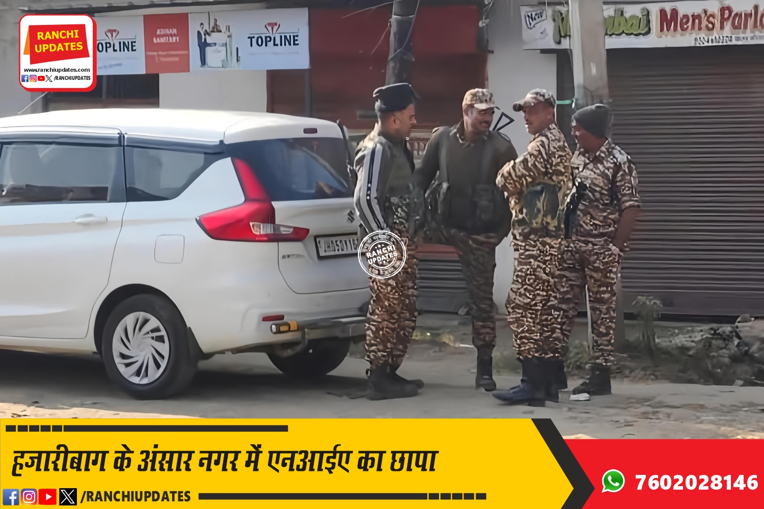 CityNews हजारीबाग में एनआईए की बड़ी कार्रवाई, Shah Nawaz detained after... केंद्रीय जांच एजेंसी एनआईए ने गुरुवार सुबह हजारीबाग जिले के पेलावल थाना क्षेत्र के अंसार नगर स्थित शाहनवाज़ के घर... BY Ranchi Updates December 11, 2025 0 Comment