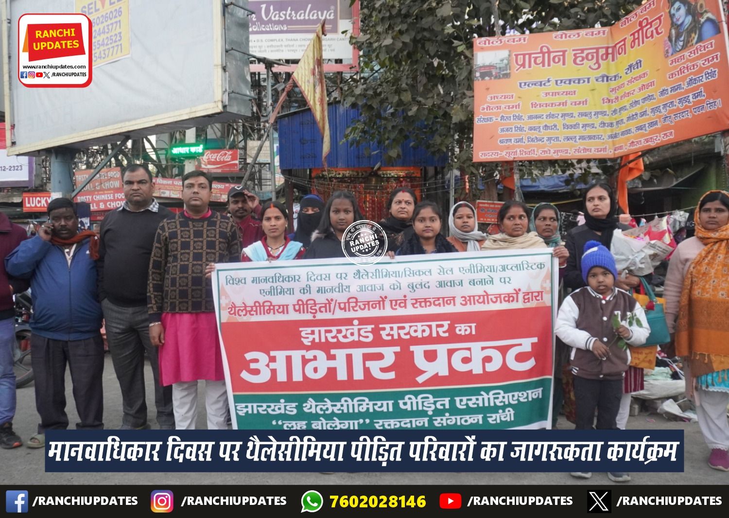 CityNews राँची में विश्व मानवाधिकार दिवस पर थैलेसीमिया जागरूकता कार्यक्रम आयोजित... विश्व मानवाधिकार दिवस के अवसर पर राँची में थैलेसीमिया से प्रभावित बच्चों, उनके परिजनों और सामाजिक कार्यकर्ताओं ने जागरूकता कार्यक्रम... BY Ranchi Updates December 10, 2025 0 Comment