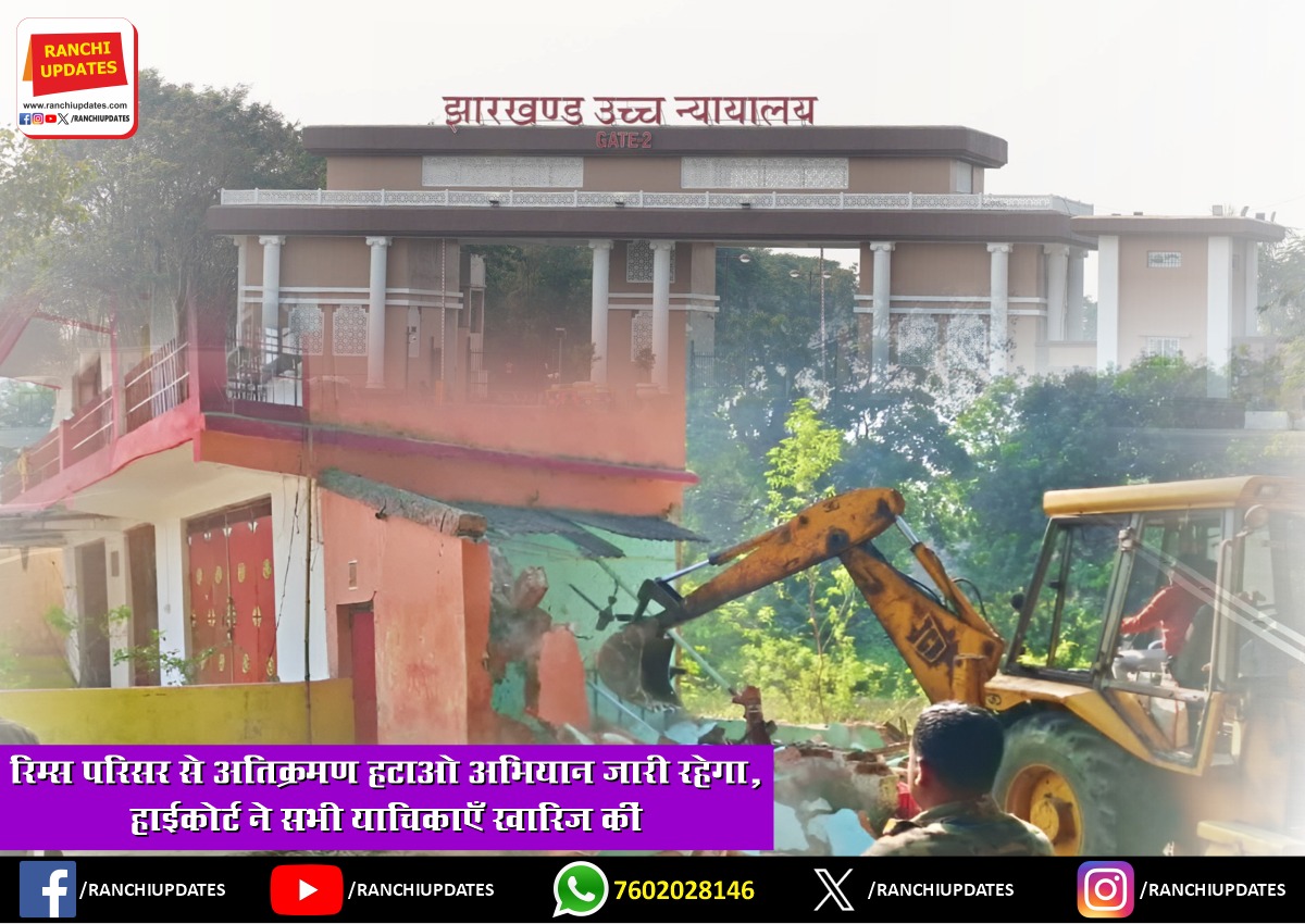 CityNews रिम्स परिसर अतिक्रमण हटाओ अभियान पर हाईकोर्ट का बड़ा फैसला... झारखंड हाईकोर्ट ने रिम्स परिसर से चल रहे अतिक्रमण हटाओ अभियान को जारी रखने का स्पष्ट आदेश देते हुए इससे... BY Ranchi Updates December 11, 2025 0 Comment