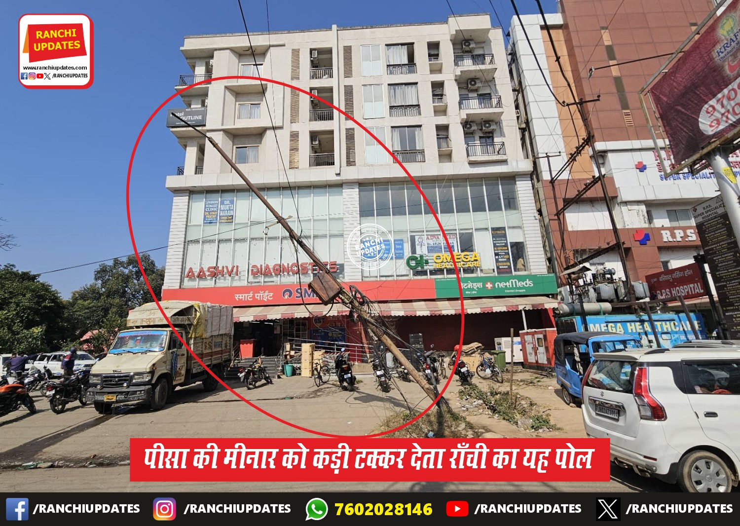 CityNews Pisa को टक्कर देता राँची का Pole — Ranchi’s Leaning... पीसा की मीनार को कड़ी टक्कर देता राँची का यह पोल। पीसा की मीनार वर्तमान में करीब 3.97 डिग्री के... BY Ranchi Updates December 9, 2025 0 Comment