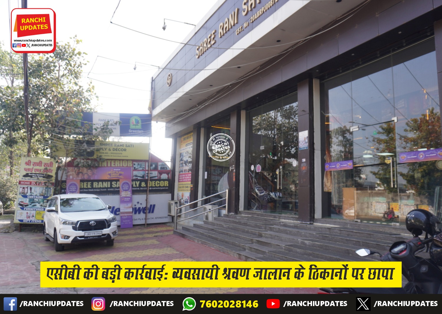 CityNews झारखंड ACB की बड़ी कार्रवाई — Businessman Shravan Jalan के... झारखंड एसीबी ने सोमवार को बड़ी कार्रवाई करते हुए चर्चित व्यवसायी श्रवण जालान के घर, ऑफिस और अन्य कई ठिकानों... BY Ranchi Updates December 9, 2025 0 Comment