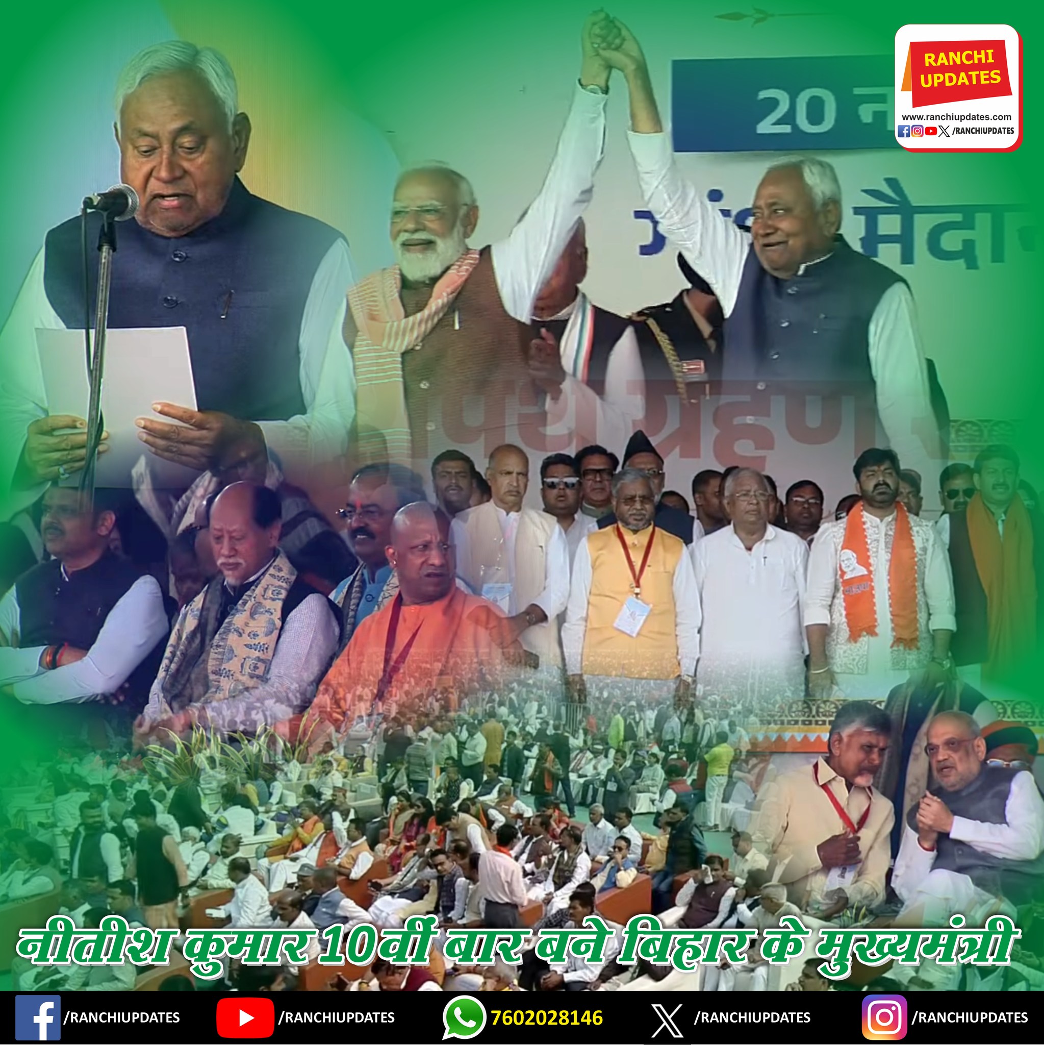 CityNews Politics गांधी मैदान में ऐतिहासिक क्षण: नीतीश कुमार ने 10वीं बार... पटना का ऐतिहासिक गांधी मैदान आज एक बार फिर राजनीति के बड़े क्षण का साक्षी बना, जब नीतीश कुमार ने... BY Ranchi Updates November 20, 2025 0 Comment