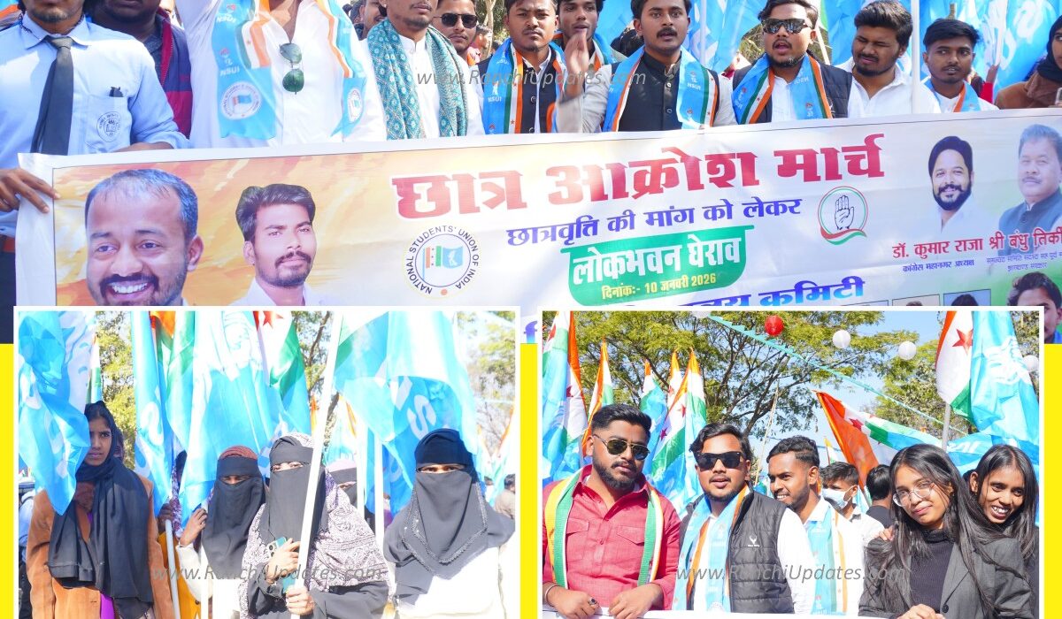 झारखंड में पिछले करीब दो वर्षों से छात्र-छात्राओं को छात्रवृत्ति नहीं मिलने का मुद्दा अब सड़कों पर उतर आया है। इसी को लेकर आज NSUI ने मोरहाबादी मैदान से लोक भवन तक जन आक्रोश मार्च निकाला। मार्च के दौरान छात्रों ने केंद्र सरकार के खिलाफ जोरदार नारेबाजी करते हुए छात्रवृत्ति राशि शीघ्र जारी करने की मांग की।