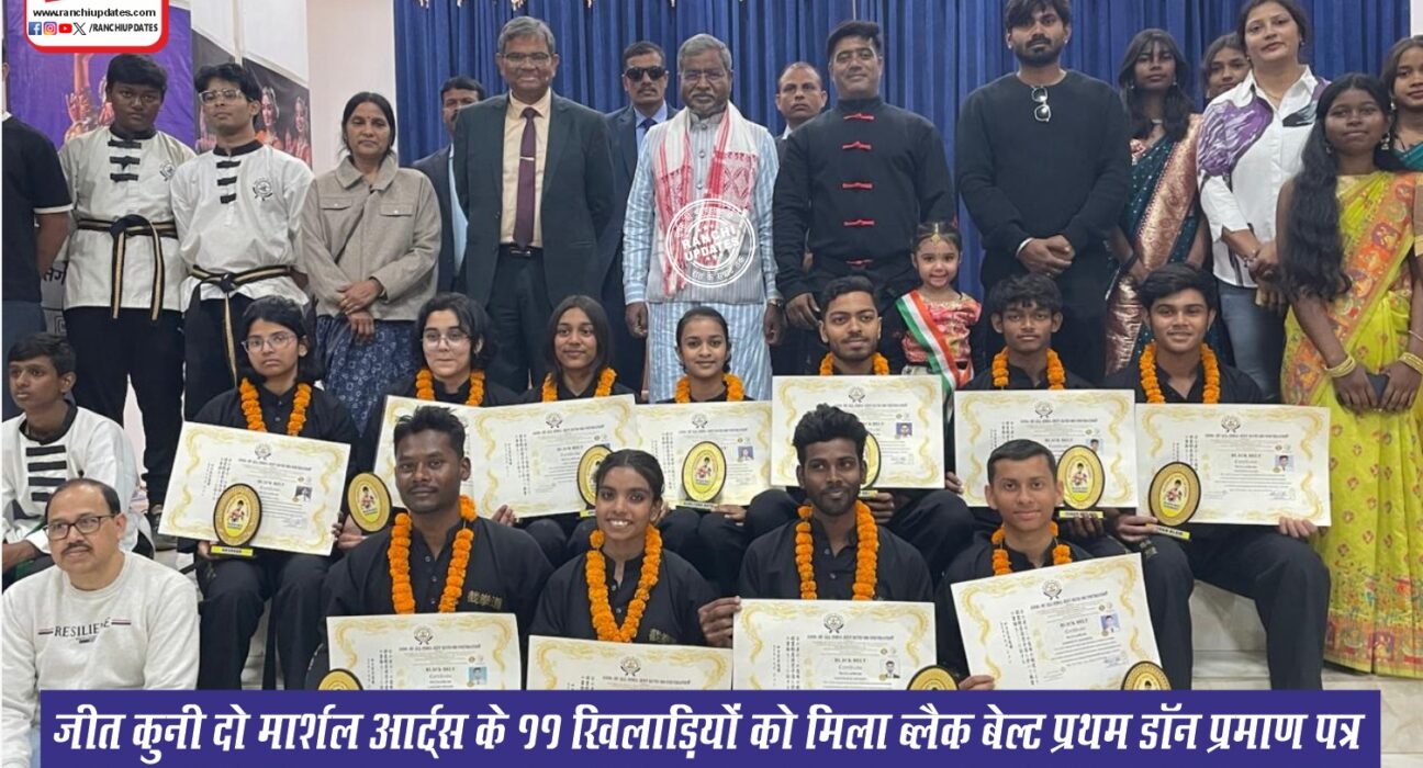 जीत कुनी दो मार्शल आर्ट्स के 11 प्रतिभाशाली खिलाड़ियों को ब्लैक बेल्ट प्रथम डॉन का प्रमाण पत्र एक सम्मान समारोह के दौरान प्रदान किया गया। यह सम्मान पूर्व मुख्यमंत्री बाबूलाल मरांडी, डीएवी आलोक पब्लिक स्कूल के प्रधानाचार्य डॉ. अशोक कुमार एवं कोच सिफू बिस्वजीत कर्मकार के कर-कमलों से प्रदान किया गया।