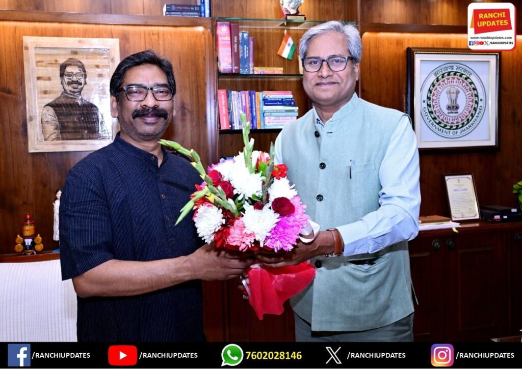 मुख्यमंत्री श्री हेमन्त सोरेन से आज कांके रोड रांची स्थित मुख्यमंत्री आवासीय कार्यालय में दिगंबर जैन पंचायत, जैन मंदिर, अपर बाजार रांची के एक प्रतिनिधिमंडल ने मुलाकात की। इस अवसर पर मुख्यमंत्री को प्रतिनिधिमंडल में शामिल सदस्यों ने आगामी 01 से 6 अप्रैल 2026 तक जिला स्कूल परिसर रांची में आयोजित होने वाले पंचकल्याणक प्रतिष्ठा महोत्सव में सम्मिलित होने हेतु सादर आमंत्रित किया। मौके पर दिगंबर जैन पंचायत के अध्यक्ष श्री प्रदीप बाकलीवाल, मंत्री श्री जितेंद्र छाबड़ा सहित श्री पंकज पांडेय, श्री पूरणमल जी सेठी, श्री अमित रारा उपस्थित थे।