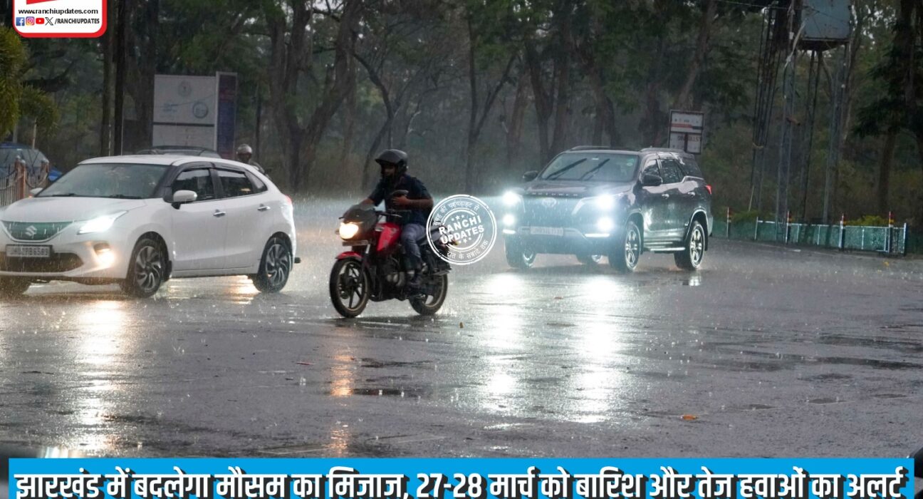 झारखंड में आने वाले दिनों में मौसम का मिजाज बदलने वाला है। भारतीय मौसम विभाग (IMD) ने 27 और 28 मार्च को राज्य के कई जिलों में तेज हवाओं, गरज के साथ बारिश, वज्रपात और ओलावृष्टि की संभावना जताते हुए येलो अलर्ट जारी किया है।