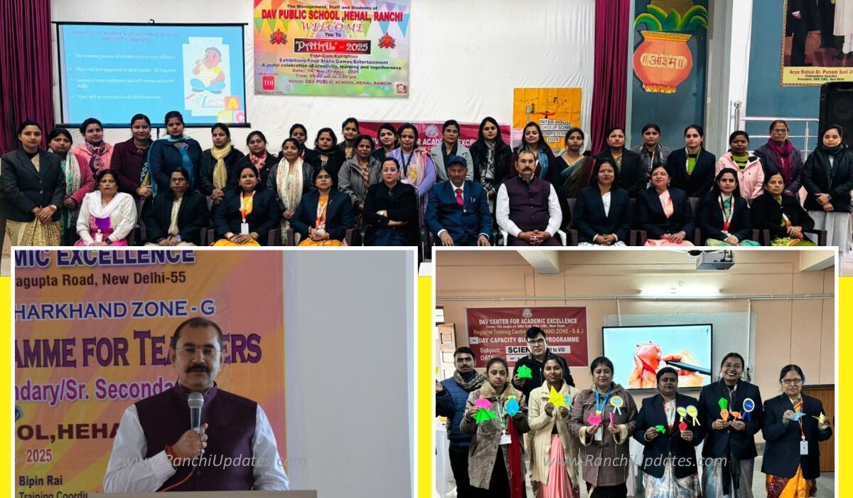 डीएवी पब्लिक स्कूल हेहल, राँची में आयोजित दो-दिवसीय शिक्षक संवर्धन कार्यशाला का दूसरा दिन प्रशिक्षण, संवाद और व्यावहारिक गतिविधियों के साथ अत्यंत सफलतापूर्वक संपन्न हुआ। यह कार्यशाला डीएवी के शैक्षणिक उत्कृष्टता केंद्र, नई दिल्ली के तत्वावधान में आयोजित की गई, जिसमें ज़ोन-G के लगभग 300 शिक्षक-शिक्षिकाओं ने भाग लिया।