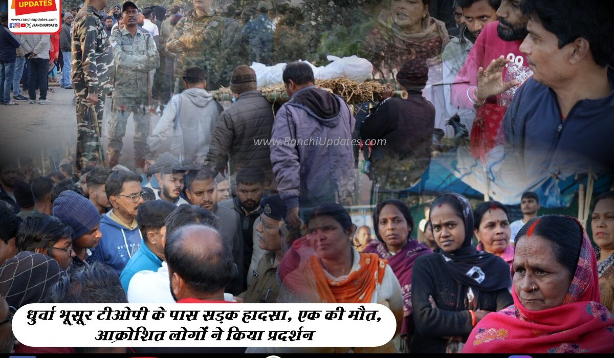 राँची के धुर्वा भूसूर टीओपी के पास हुए सड़क हादसे में एक व्यक्ति की मौके पर ही मौत हो गई। घटना के बाद इलाके में तनाव फैल गया और आक्रोशित लोगों ने शव को सड़क पर रखकर प्रदर्शन शुरू कर दिया, जिससे कुछ समय के लिए यातायात प्रभावित रहा।
