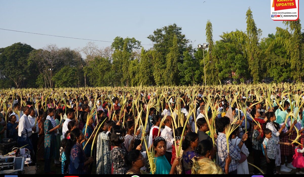 आज पाम संडे (खजूर पर्व) के पावन अवसर पर राँची में आस्था और उत्साह का अद्भुत संगम देखने को मिला। ईसाई समाज के हजारों धर्मावलंबी लोयोला मैदान में एकत्र हुए, जहां से भव्य शोभायात्रा निकालते हुए श्रद्धालु पुरुलिया रोड स्थित संत मरिया महागिरजाघर पहुँचे। इस दौरान भक्तों ने प्रार्थना, भक्ति गीतों और धार्मिक परंपराओं के साथ प्रभु यीशु के यरूशलेम आगमन की स्मृति को जीवंत किया। पूरे शहर में श्रद्धा, शांति और एकता का संदेश गूंजता रहा।