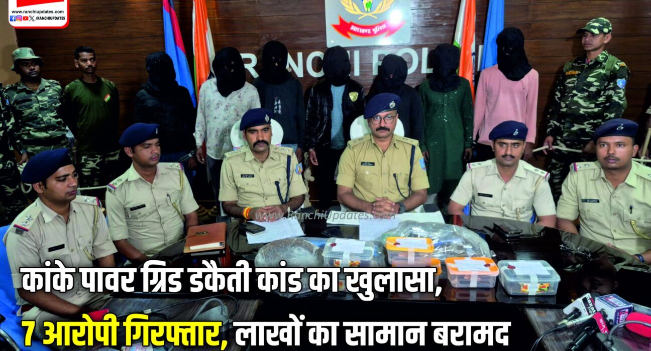 राँची जिले के पिठौरिया थाना क्षेत्र स्थित कोल्हया कनाद में 132/33 पावर ग्रिड सब-स्टेशन में हुई डकैती मामले का पुलिस ने खुलासा कर दिया है। 23/24 मार्च 2026 की रात अज्ञात अपराधियों ने सुरक्षाकर्मियों और कर्मचारियों को बंधक बनाकर करीब 4 लाख रुपये मूल्य के कॉपर सामग्री, NVR सिस्टम, अर्थ स्विच ब्लेड, टॉर्च और नकदी लूट ली थी।