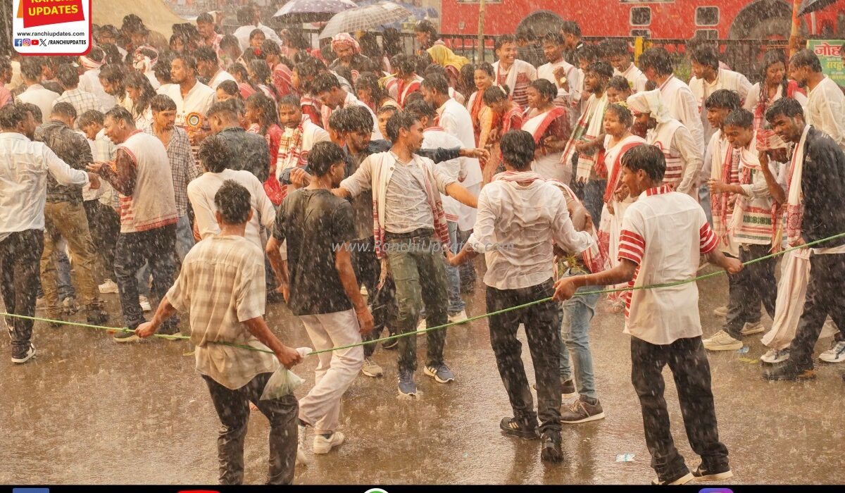 ताल पर झूमते कदम इस लम्हे को एक खूबसूरत लय में बांध देते हैं। बारिश की नरम फुहारें जब धरती को छूती हैं, तो लगता है मानो प्रकृति भी इस जश्न का हिस्सा बनकर मुस्कुरा रही हो। भीगे रंग, सजी हुई पारंपरिक वेशभूषा और चेहरों पर झलकती आत्मीय खुशी—हर पल एक नाज़ुक, दिलकश एहसास में ढल जाता है। राँची के अल्बर्ट एक्का चौक पर सजी सरहुल की यह झांकी सिर्फ देखी नहीं जाती, महसूस की जाती है।