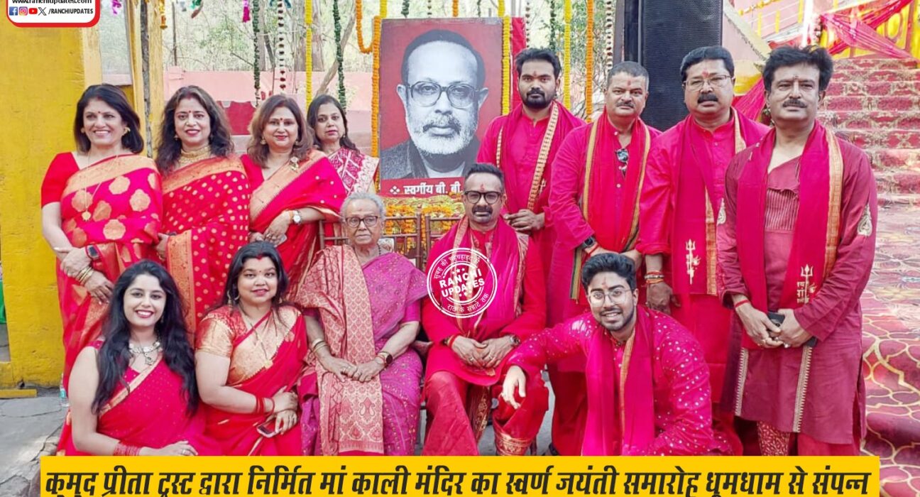 कुमुद प्रीता ट्रस्ट द्वारा निर्मित मां काली मंदिर का 50वां स्थापना दिवस (स्वर्ण जयंती समारोह) भक्ति और श्रद्धा के साथ धूमधाम से मनाया गया। इस अवसर पर मंदिर परिसर को भव्य रूप से सजाया गया था और वातावरण पूरी तरह भक्तिमय बना रहा।