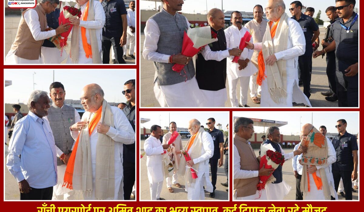 पुरुलिया में चुनावी हुंकार भरने के बाद दिल्ली रवाना होने से पहले देश के गृह एवं सहकारिता मंत्री अमित शाह का राँची एयरपोर्ट पर भव्य स्वागत किया गया। इस मौके पर प्रदेश अध्यक्ष आदित्य साहू और नेता प्रतिपक्ष बाबूलाल मरांडी ने उनका अभिनंदन किया।