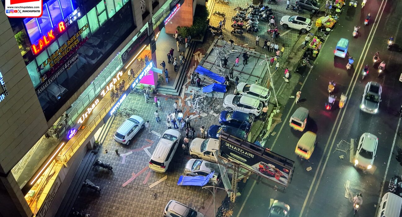 राँची में तेज आंधी से कडरू के सोरोस बार का रूफटॉप शेड गिरा, गाड़ियों को नुकसान | Strong Winds Damage Rooftop Shed at Soros Bar in Kadru Ranchi
