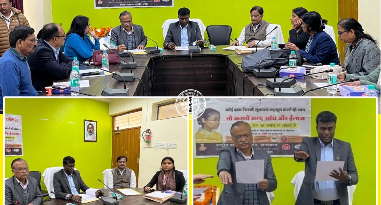राँची के समाहरणालय में आज जिले के उपायुक्त मंजूनाथ भजंत्री की अध्यक्षता में स्पर्श कुष्ठ जागरूकता अभियान 2026, कुष्ठ रोग खोज अभियान (द्वितीय चरण) एवं एलएसडीसी 2026 के सफल क्रियान्वयन को लेकर समीक्षा बैठक आयोजित की गई। बैठक में 9 मार्च से 23 मार्च 2026 तक प्रस्तावित एलएसडीसी अभियान की तैयारियों पर विस्तृत चर्चा की गई।