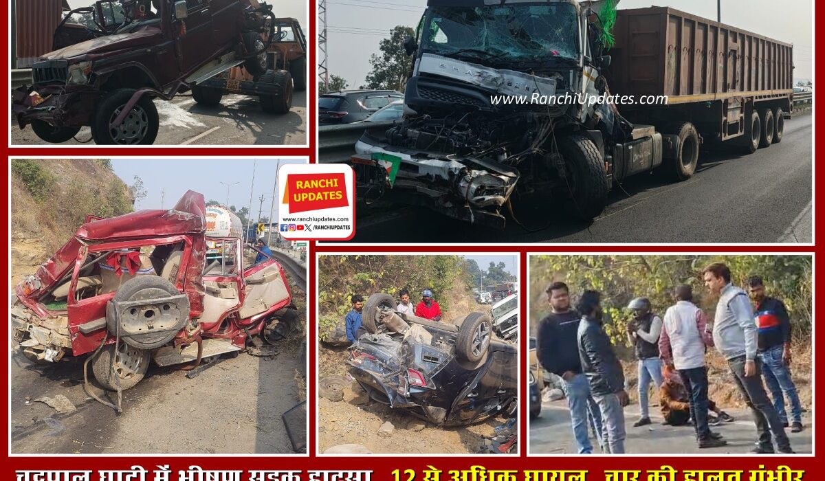 रामगढ़ जिले की कुख्यात चुट्टूपालू घाटी में शनिवार को एक बार फिर भीषण सड़क हादसा हुआ, जिसने सड़क सुरक्षा पर गंभीर सवाल खड़े कर दिए। राँची की ओर से आ रहे एक अनियंत्रित टेलर ने पहले एक बाइक और फिर पांच चारपहिया वाहनों को जोरदार टक्कर मार दी। टक्कर के बाद वाहन सड़क किनारे गड्ढों और चट्टानों से टकराकर पलट गए, जिससे कारों के परखच्चे उड़ गए। हादसे में 12 से अधिक लोग घायल हो गए, जिनमें चार की हालत गंभीर बताई जा रही है। गंभीर घायलों को बेहतर इलाज के लिए राँची रेफर किया गया है। इस दुर्घटना में राँची से रजरप्पा जा रहे कल्याण विभाग के डिप्टी डायरेक्टर संजीव कुमार की गाड़ी भी बुरी तरह क्षतिग्रस्त हो गई। सूचना मिलते ही रामगढ़ थाना पुलिस और जिला प्रशासन की टीम मौके पर पहुंची, घायलों को बाहर निकालकर अस्पताल भेजा गया। हादसे के बाद कुछ देर के लिए सड़क वन-वे की गई।