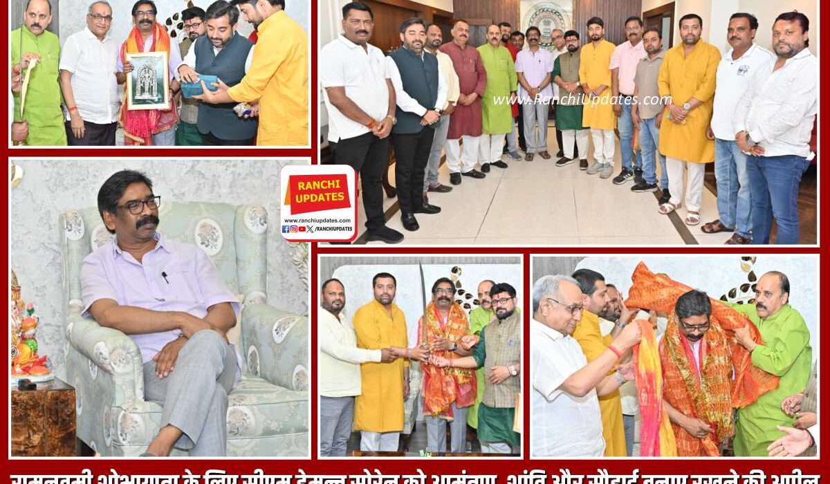 मुख्यमंत्री हेमन्त सोरेन से आज कांके रोड स्थित मुख्यमंत्री आवासीय कार्यालय, राँची में रामनवमी महोत्सव के मद्देनज़र विभिन्न प्रतिनिधिमंडलों ने शिष्टाचार भेंट की। प्रतिनिधिमंडलों ने 27 मार्च 2026 को आयोजित होने वाली भव्य शोभायात्रा में मुख्यमंत्री को सपरिवार शामिल होने का आमंत्रण दिया, जिसे उन्होंने हर्षपूर्वक स्वीकार किया।