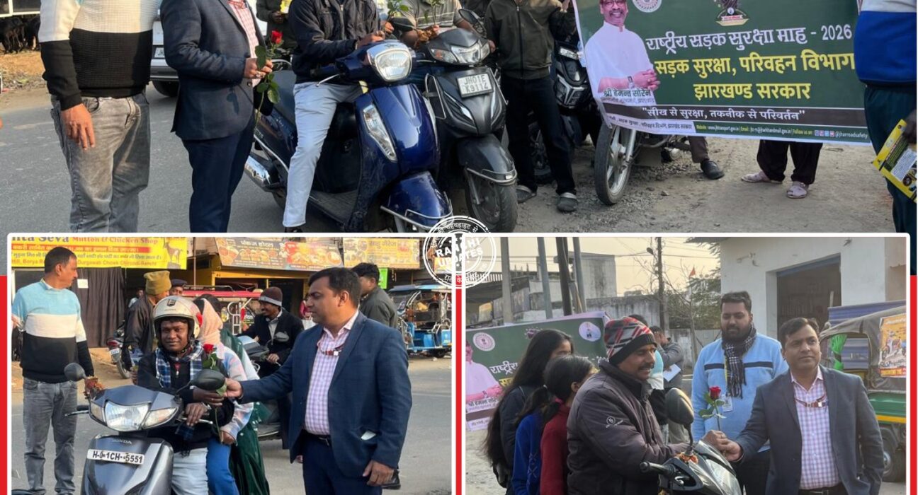 उपायुक्त सह जिला दंडाधिकारी राँची श्री मंजूनाथ भजंत्री के निर्देशानुसार राष्ट्रीय सड़क सुरक्षा माह के तहत शुक्रवार को जिले में विशेष जागरूकता अभियान चलाया गया। जिला परिवहन पदाधिकारी राँची श्री अखिलेश कुमार के नेतृत्व में ‘रोज ऐट रोड’ कार्यक्रम का आयोजन शहरी थाना क्षेत्र के विभिन्न स्थानों पर किया गया।