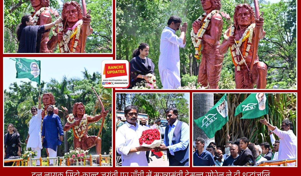 हूल विद्रोह के महानायक सिदो-कान्हू की जयंती पर आज हेमन्त सोरेन और कल्पना सोरेन ने राँची के सिदो-कान्हू उद्यान पहुंचकर उनकी प्रतिमा पर माल्यार्पण किया और श्रद्धांजलि अर्पित की। इस अवसर पर मुख्यमंत्री ने कहा कि झारखंड वीरों की भूमि रही है, जहां आदिवासी एवं मूलवासी समुदाय ने जल, जंगल और जमीन की रक्षा के लिए सदियों से संघर्ष किया है।