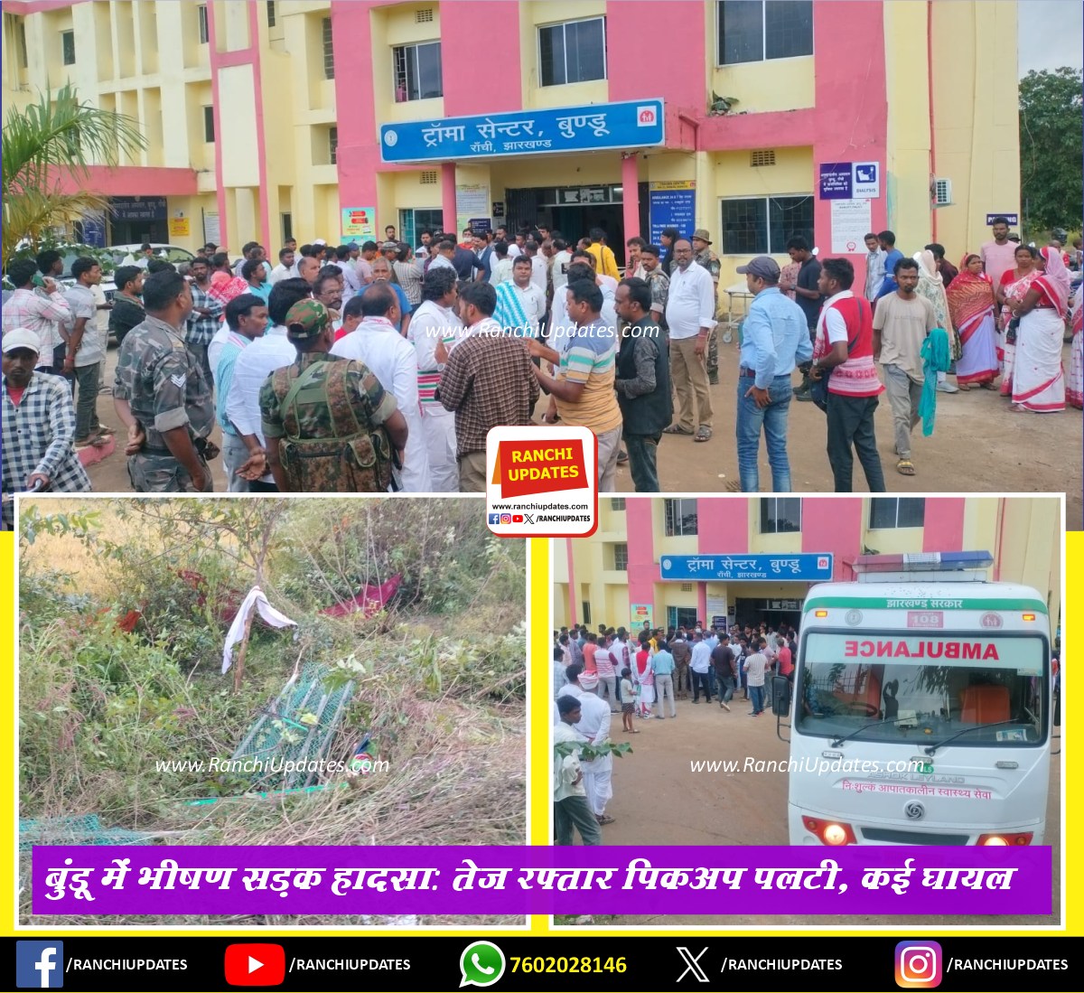 बुंडू में दर्दनाक सड़क हादसा, तेज रफ्तार पिकअप वाहन पलटा; कई घायल, कुछ की मौत की आशंका | Road Accident in Bundu Ranchi, Several Injured as Pickup Vehicle Overturns