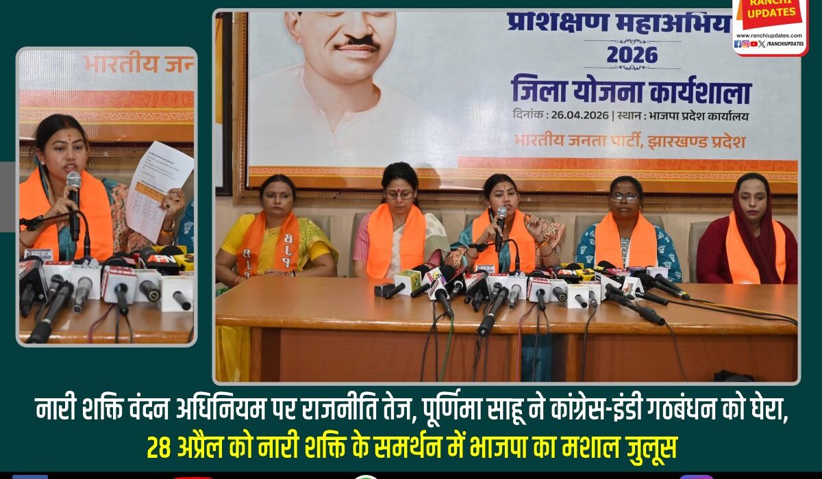 भाजपा ने 28 अप्रैल को राँची में जयपाल सिंह स्टेडियम से अल्बर्ट एक्का चौक तक मशाल जुलूस निकालने की घोषणा की है, जिसमें हजारों महिलाएं भाग लेंगी।
