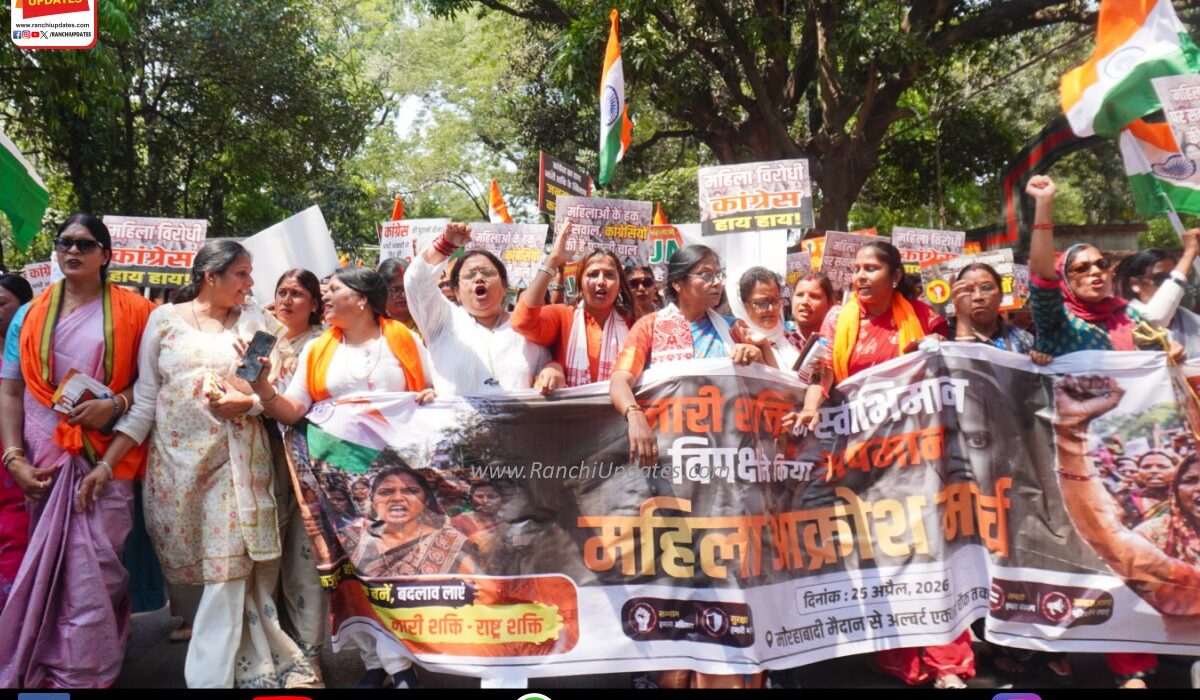 राँची में महिला आरक्षण बिल ‘नारी शक्ति वंदन अधिनियम’ को लेकर सियासी माहौल गरमा गया है। शनिवार को भाजपा ने राजधानी में महिला आक्रोश मार्च निकालकर विपक्ष और राज्य सरकार पर तीखा हमला बोला।
