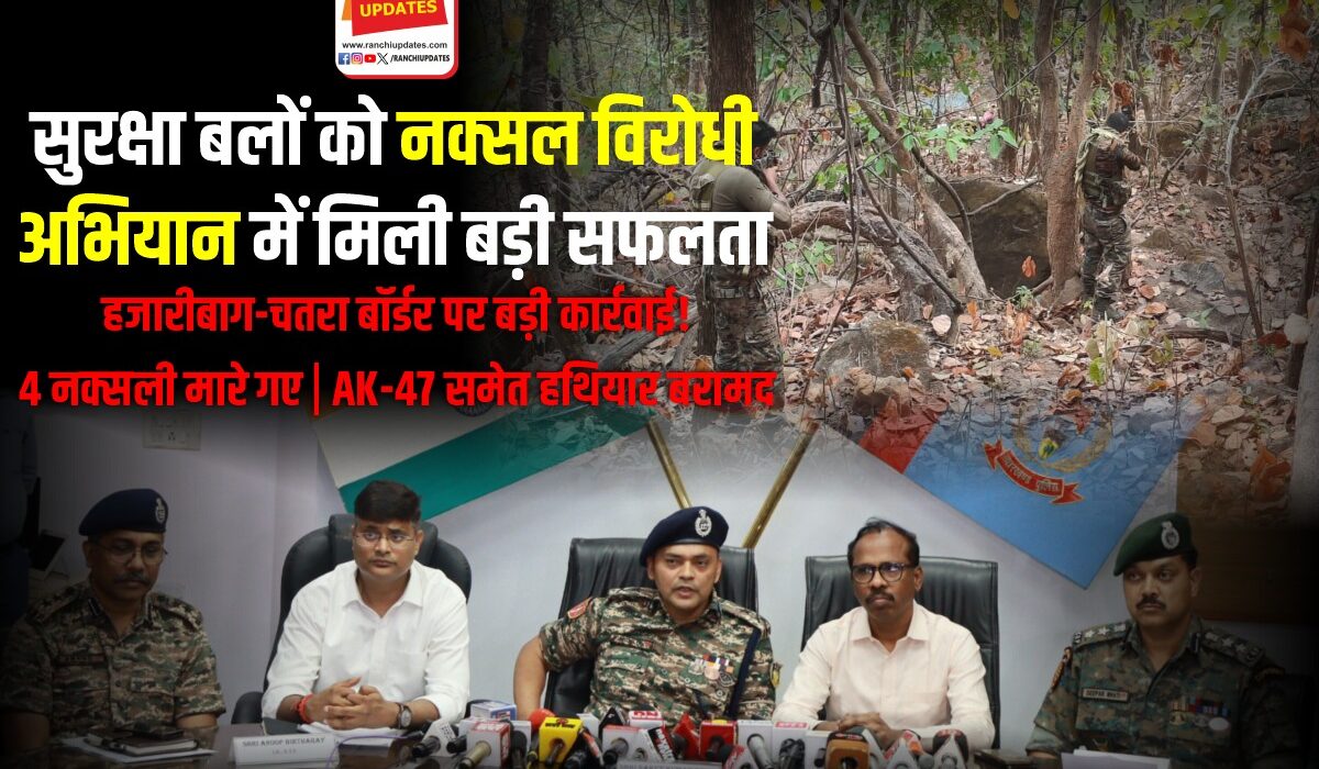 हजारीबाग-चतरा सीमावर्ती जंगल क्षेत्र में सुरक्षा बलों को नक्सल विरोधी अभियान में बड़ी सफलता मिली है। संयुक्त बलों द्वारा चलाए गए ऑपरेशन में चार नक्सली मारे गए, जिनमें एक 15 लाख का इनामी रीजनल कमेटी सदस्य भी शामिल है।