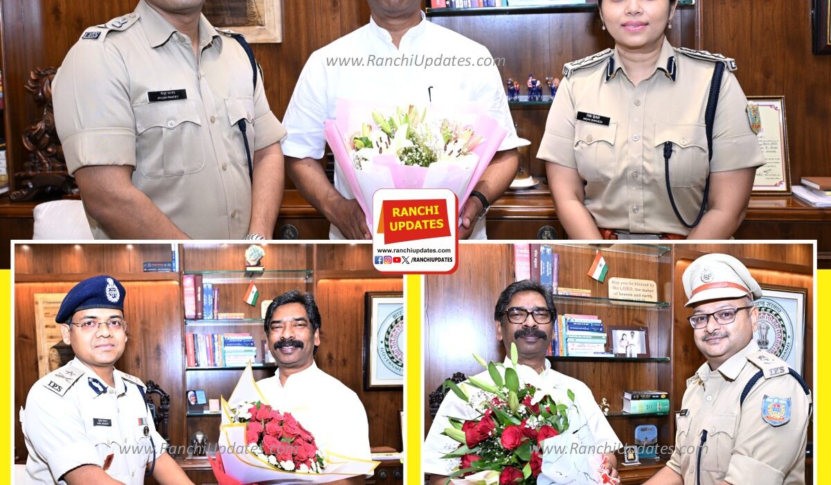 मुख्यमंत्री हेमन्त सोरेन से आज कांके रोड स्थित मुख्यमंत्री आवासीय कार्यालय, राँची में पुलिस सेवा में नव पदस्थापित अधिकारियों ने शिष्टाचार मुलाकात की। इस दौरान अधिकारियों ने अपनी नई जिम्मेदारियों और कार्यक्षेत्र को लेकर मुख्यमंत्री से चर्चा की।
