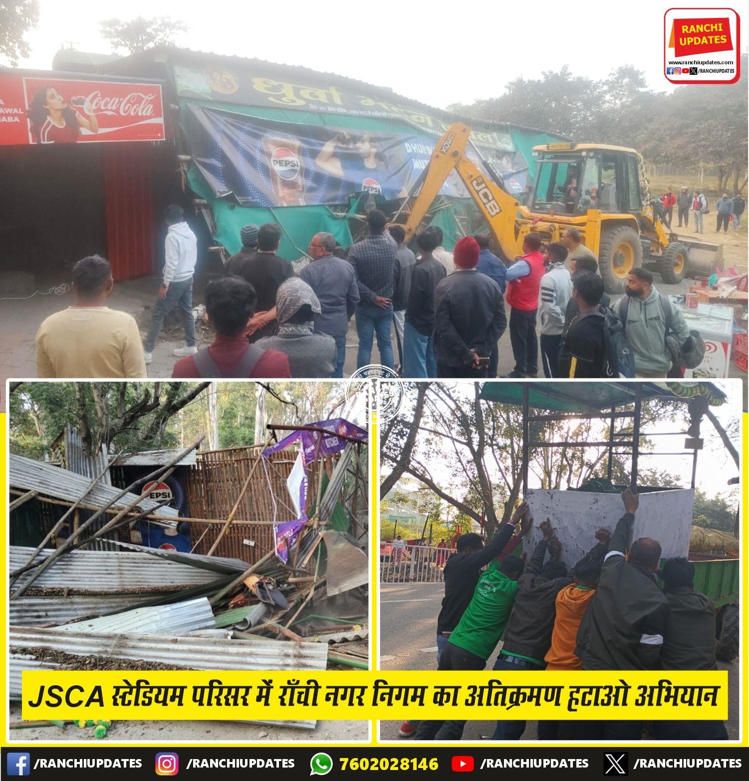राँची नगर निगम ने आज उच्च न्यायालय के निर्देश पर JSCA क्रिकेट स्टेडियम, धुर्वा के आसपास अतिक्रमण हटाने का अभियान चलाया। अभियान के दौरान स्टेडियम से जुड़े सभी मार्गों और