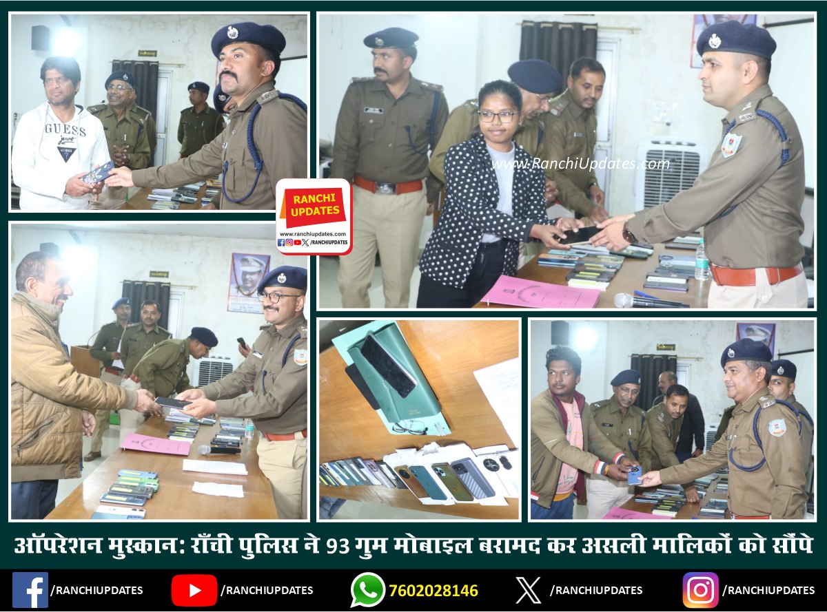 वरीय पुलिस अधीक्षक के निर्देशन में राँची पुलिस ने ‘ऑपरेशन मुस्कान’ के तहत बड़ी सफलता हासिल करते हुए जिले के विभिन्न इलाकों से गुम हुए 93 मोबाइल फोन बरामद किए