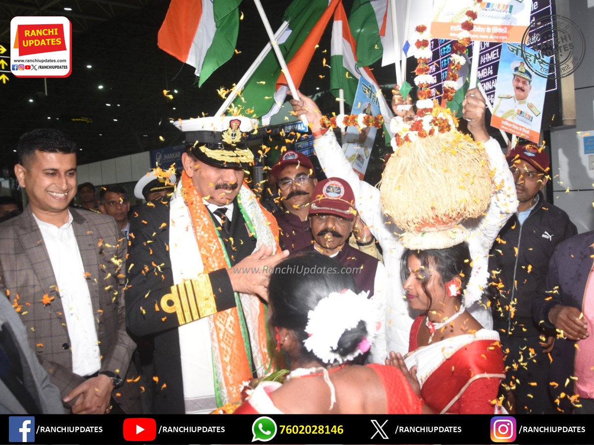 राँची के भगवान बिरसा मुंडा एयरपोर्ट पर भारतीय नौसेना प्रमुख एडमिरल दिनेश कुमार त्रिपाठी का आगमन हुआ। उनके स्वागत में भूतपूर्व सैनिकों एवं झारखंड के सांस्कृतिक कलाकारों द्वारा पारंपरिक कार्यक्रम