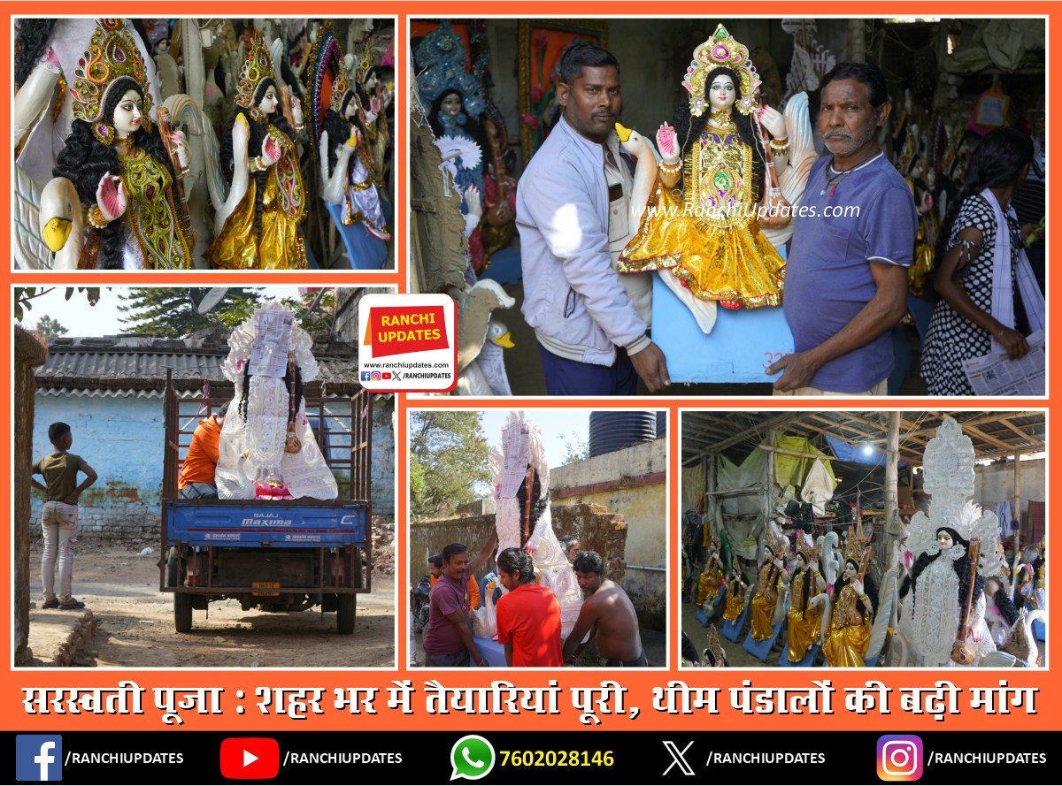 23 जनवरी को सरस्वती पूजा पूरे उल्लास और भक्ति भाव के साथ मनाई जाएगी। शहर के सैकड़ों इलाकों में विद्या की देवी मां सरस्वती की पूजा की तैयारियां अंतिम चरण