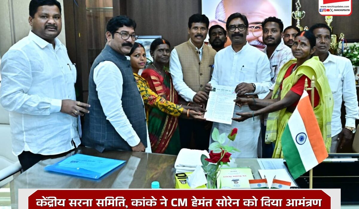 झारखंड विधानसभा परिसर में केंद्रीय सरना समिति, कांके के एक प्रतिनिधिमंडल ने मुख्यमंत्री हेमंत सोरेन से शिष्टाचार मुलाकात की। इस दौरान प्रतिनिधिमंडल ने मुख्यमंत्री को सरहुल पूजा की 47वीं वर्ष पूर्व संध्या पर आयोजित झारखंड स्तरीय नागपुरी सांस्कृतिक कार्यक्रम में मुख्य अतिथि के रूप में शामिल होने का निमंत्रण दिया।